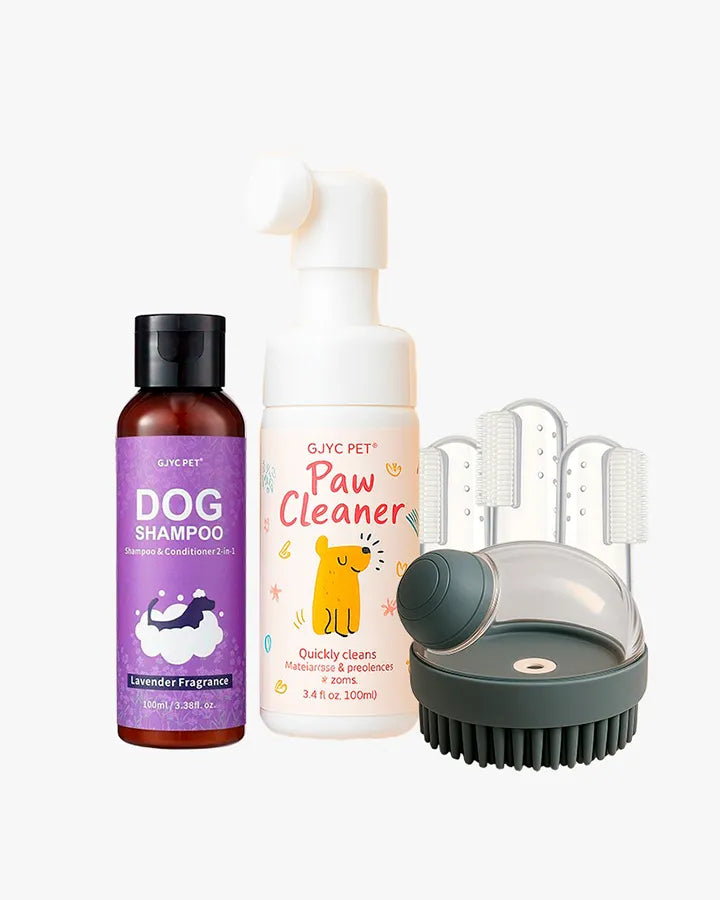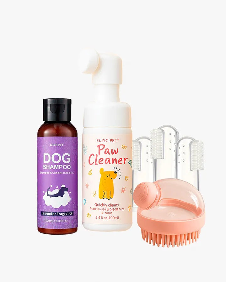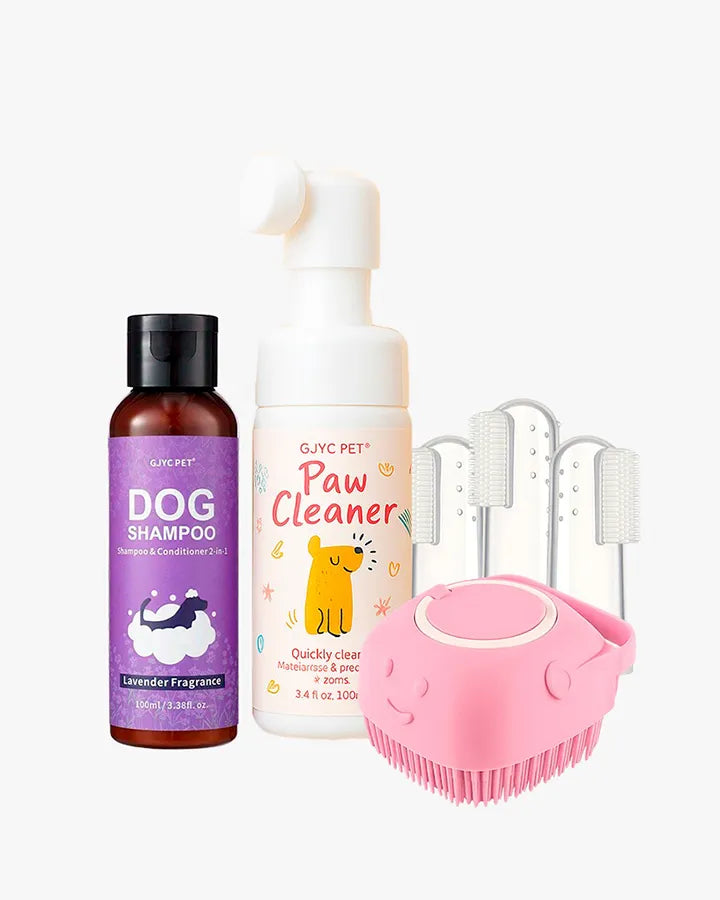 Un kit completo para que el baño de tu perro sea más fácil, cómodo y eficaz. Combina herramientas y productos que limpian, cuidan y dejan su pelaje suave y saludable.