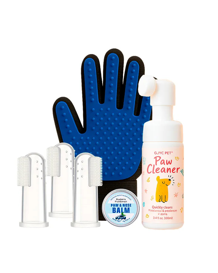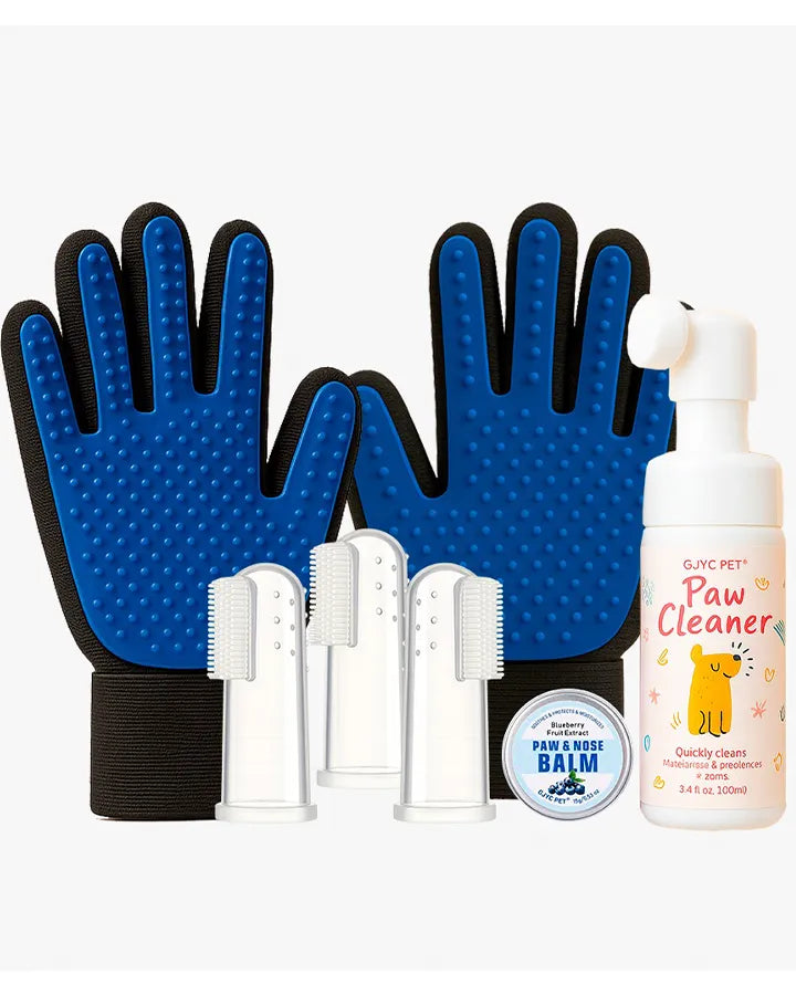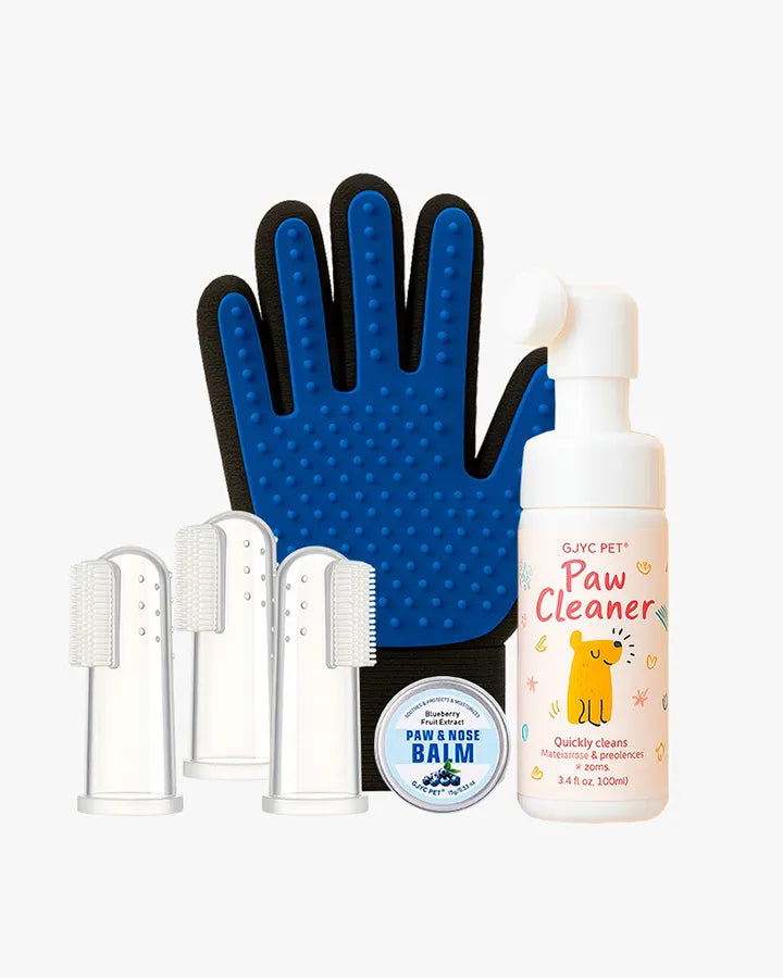Convierte la rutina de limpieza de tu peludo en un momento cómodo y efectivo. Este pack incluye todo lo necesario para mantener su pelo, patas, dientes y almohadillas en perfecto estado.